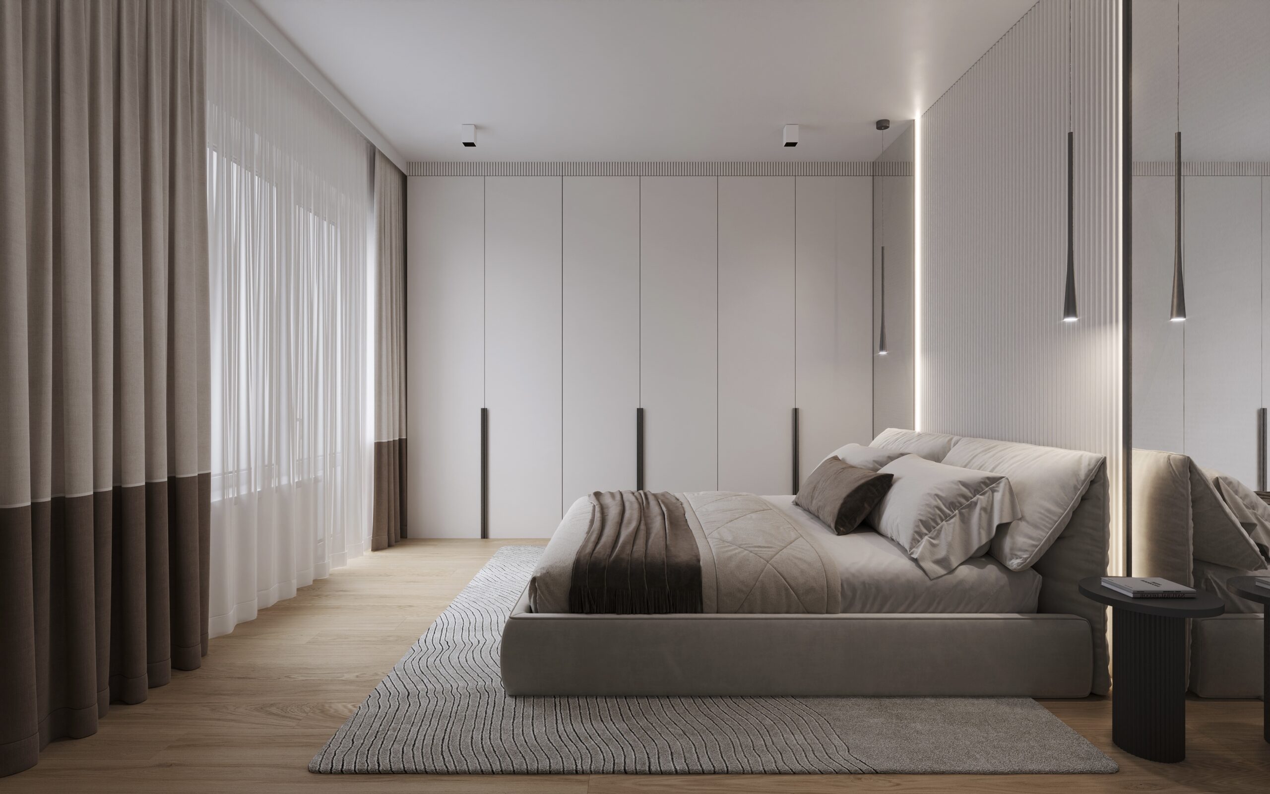 - Dyskretne ukryte drzwi Porta z klamkami TUPAI, które wtapiają się w przestrzeń, podkreślając minimalistyczny charakter domu.