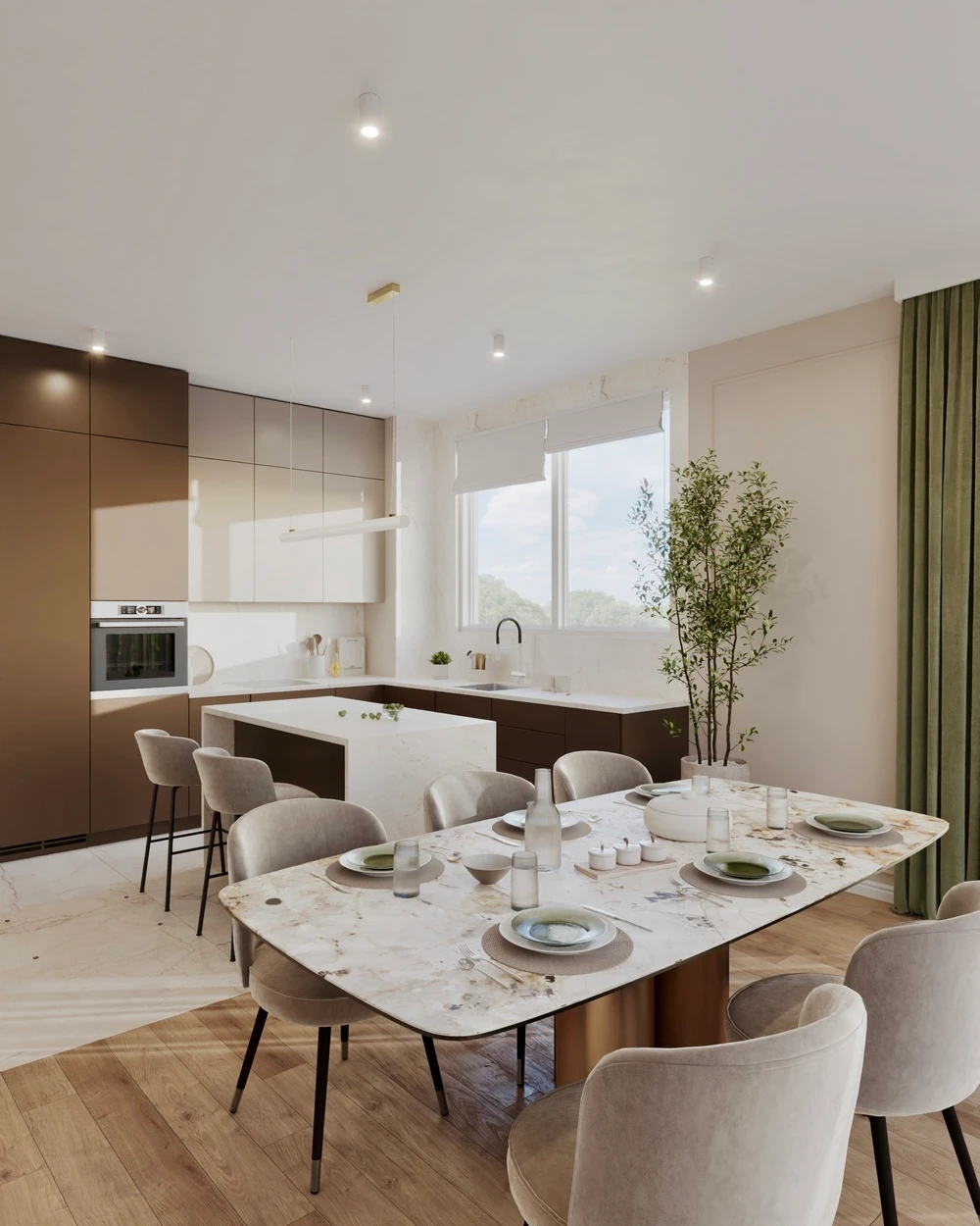 Efekt: elegancka kuchnia w klasycznym stylu, funkcjonalna i spójna.