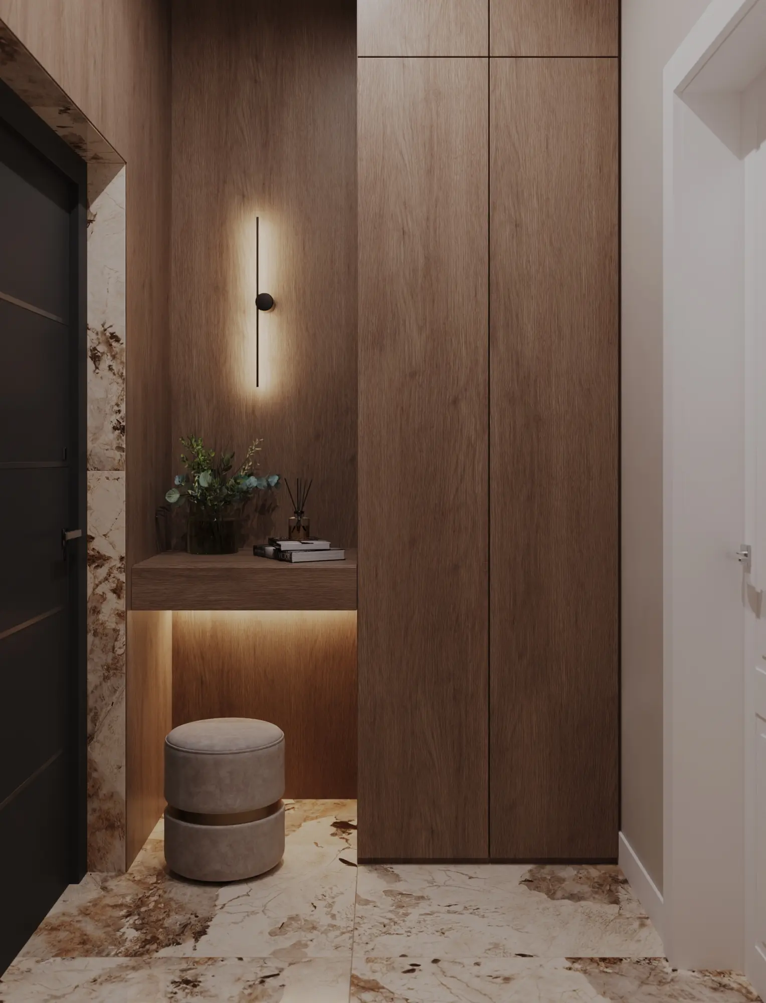 - Dyskretne oświetlenie LED w zabudowach i meblach.